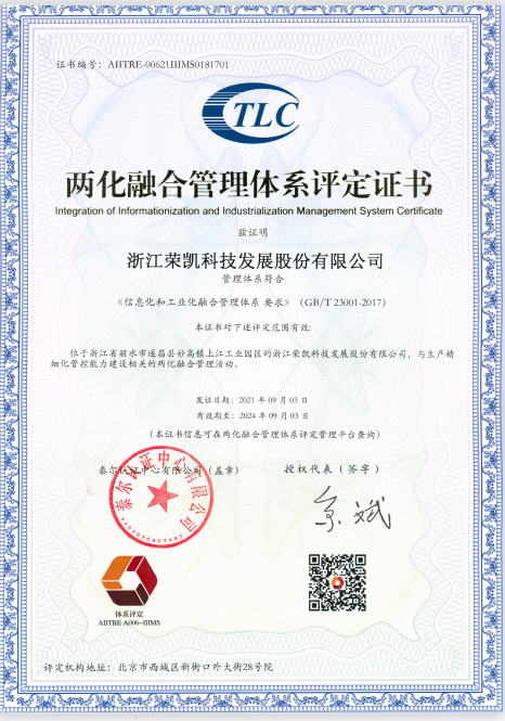 浙江榮凱科技發(fā)展股份有限公司(兩化融合管理體系證書)